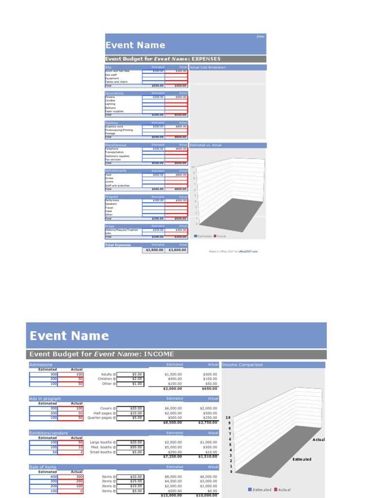 Budget For Fundraiser Event from binaries.templates.cdn.office.net While projecting a budget, first it is important to account for all the fixed and variable. Besides listing your expenses, this event budget template allows you to track your event's sources of income (attendees, merchandise sales, registration fees, sponsors, etc.). Planning an event is a crucial task because it requires great amount of money therefore everyone tries to search different ways to save their money and plan event within their budget.